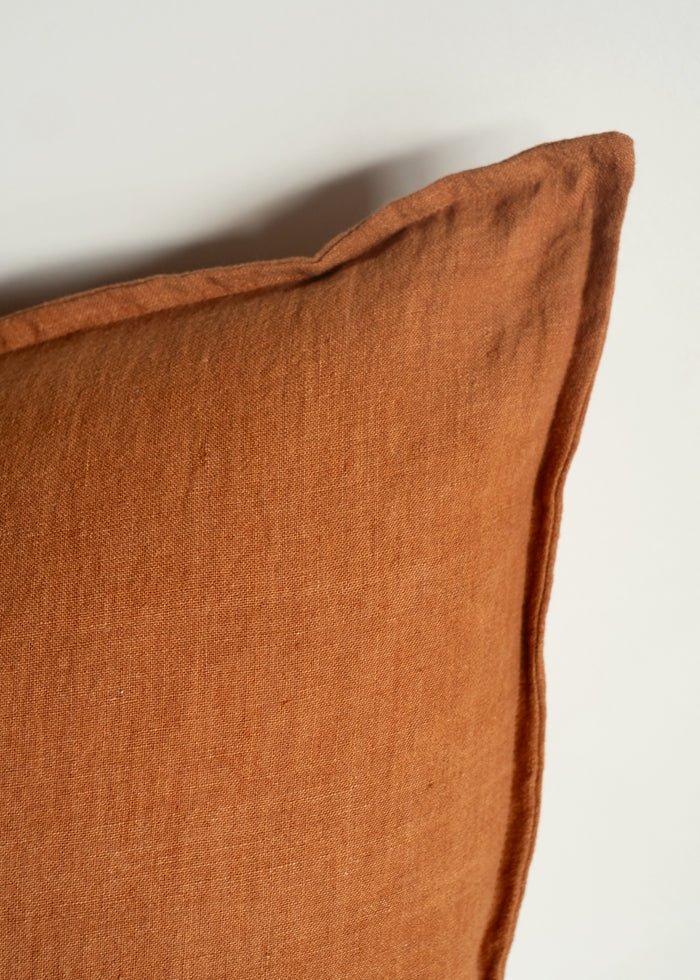 Handwoven from a medium weight natural linen and featuring a 1cm flange edge detail, the rich ochre tone and gentle surface texture makes this piece perfect for cosy, thoughtfully styled spaces.