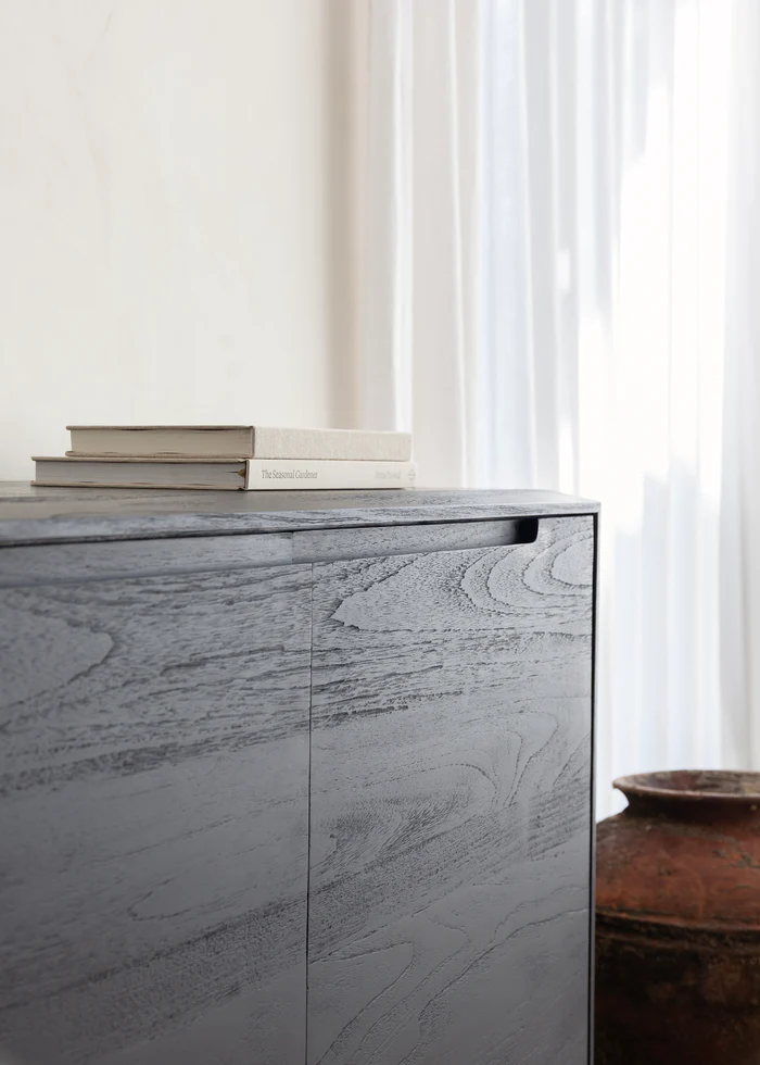 The Vision Sideboard made from beautiful new teak features a minimalist design with clean lines and a natural timber finish, offering a modern touch to any space. The integrated handles maintain a seamless look, while soft-close hinges ensure a smooth and silent operation. Perfect for storing dining essentials or decluttering your living area, this sideboard combines functionality with refined style.